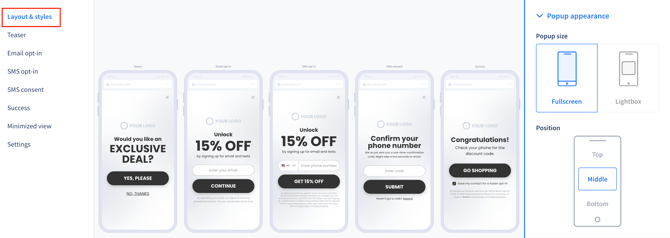Navigate to Layout & styles in the left-hand menu in your Popup editor.